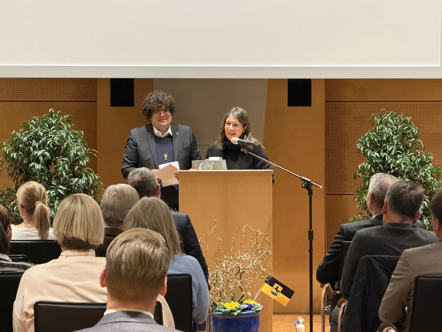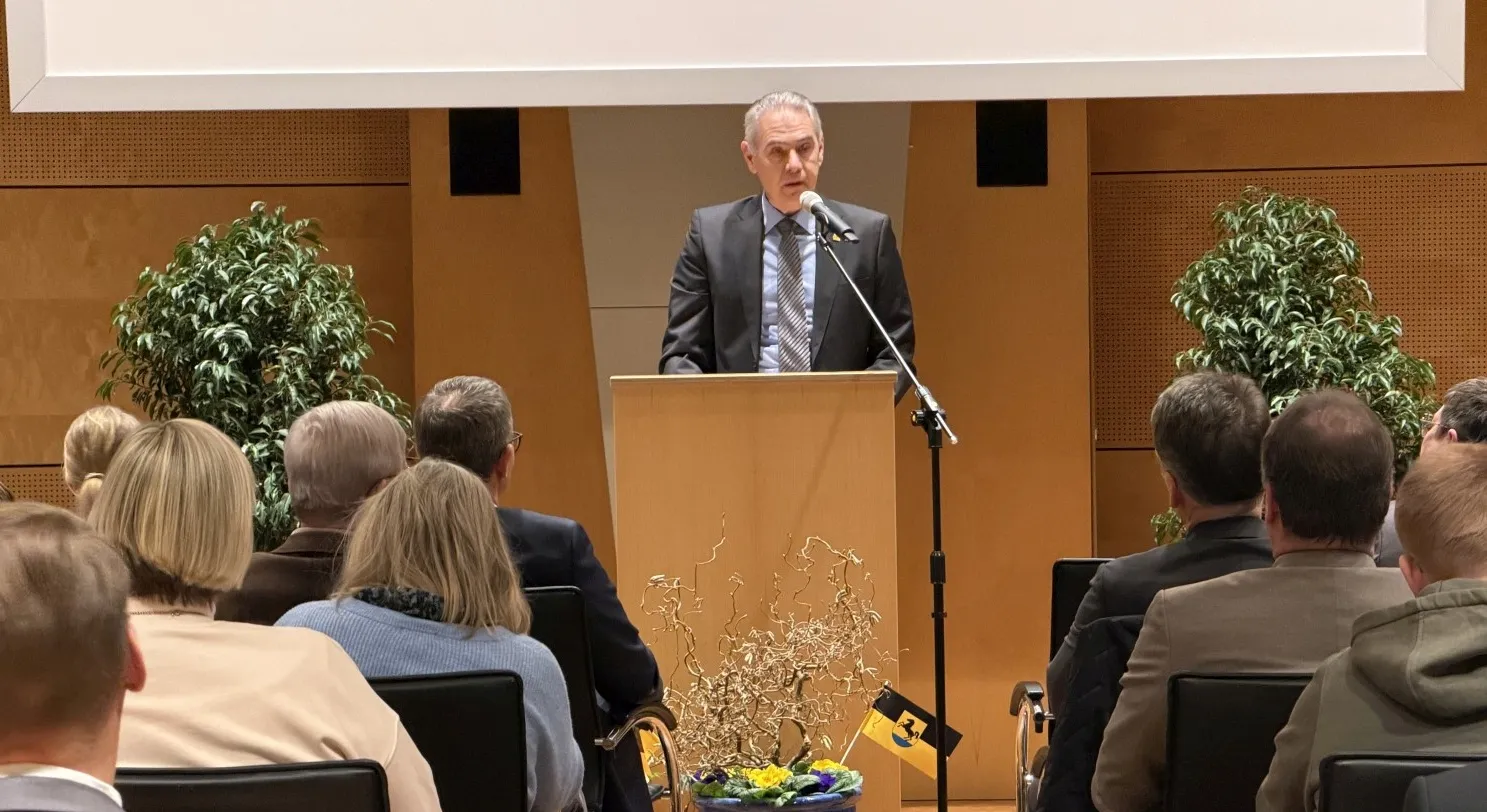 Glückwünsche zur Wiederwahl überbrachte Regierungspräsidentin Susanne Bay vom Regierungspräsidium Stuttgart: „Dieser Moment ist weit mehr als ein formaler Akt, der in einer Stadt alle acht Jahre stattfindet. Er ist Ausdruck gelebter Demokratie und vor allem Ausdruck des großen Vertrauens, das Ihnen die Bürgerinnen und Bürger von Bad Rappenau entgegengebracht haben.“ Gleichzeitig stehe der Tag für Anerkennung und Verantwortung: „Nähe zu den Menschen, Verlässlichkeit im Handeln und den Mut, auch in schwierigen Zeiten Entscheidungen zu treffen“, nannte Bay als Anforderungen an ein Stadtoberhaupt. In einer Zeit, in der sich gesellschaftliche Gräber vertiefen und der Ton in öffentlichen Debatten immer rauer werde, brauche es Persönlichkeiten wie OB Sebastian Frei, „die Menschen zusammenbringen“.