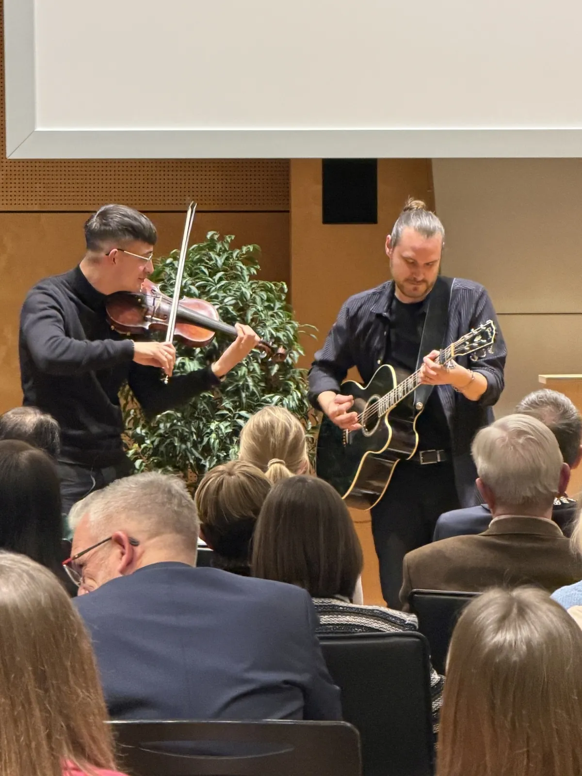 Der offizielle Teil wurde schwungvoll musikalisch mit Popsongs umrahmt von Jan Michael Vajs (Violine) und Ben Wormser (E-Gitarre).