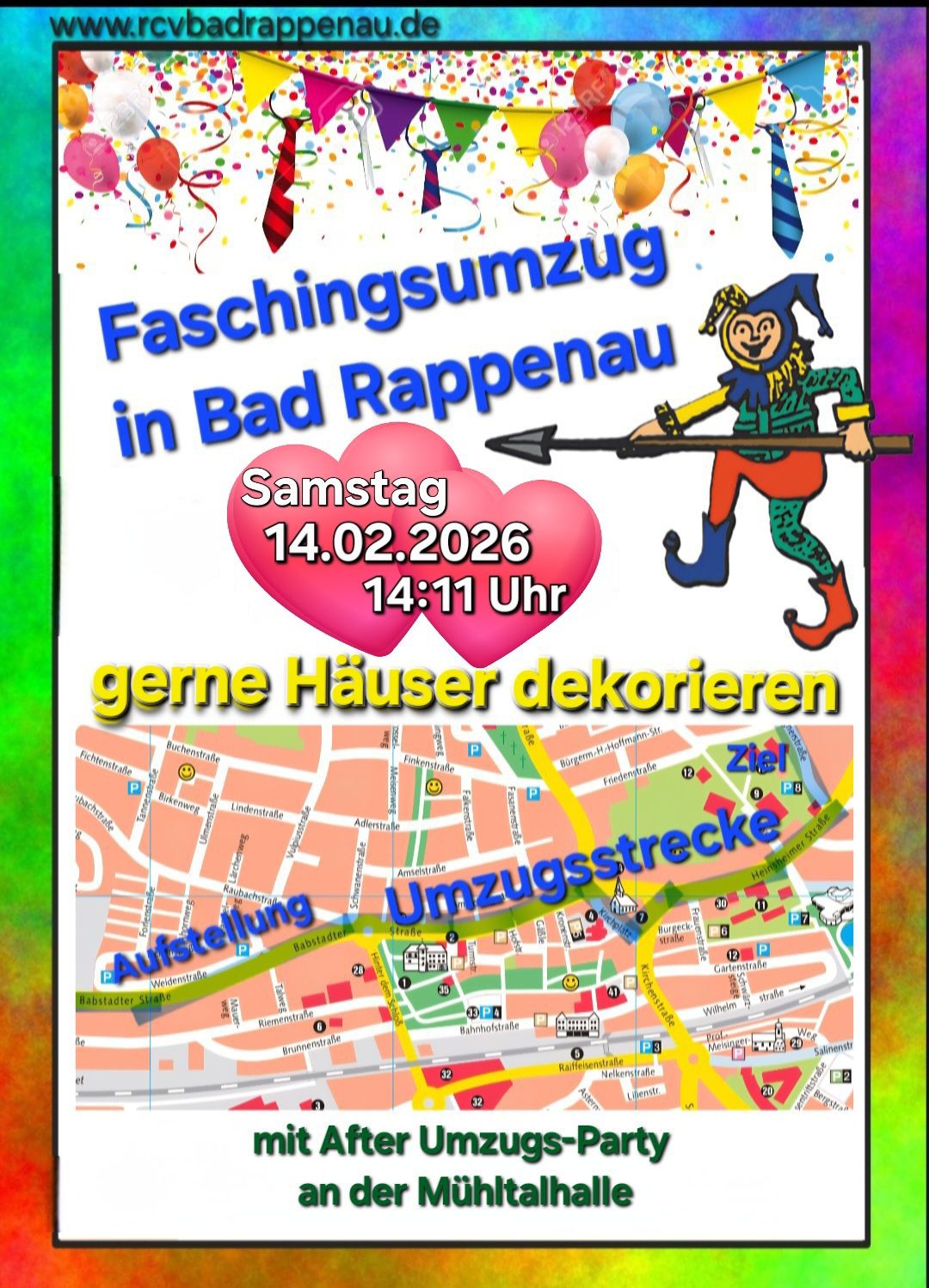 Faschingsumzug in Bad Rappenau mit open air „After Umzugs Party“