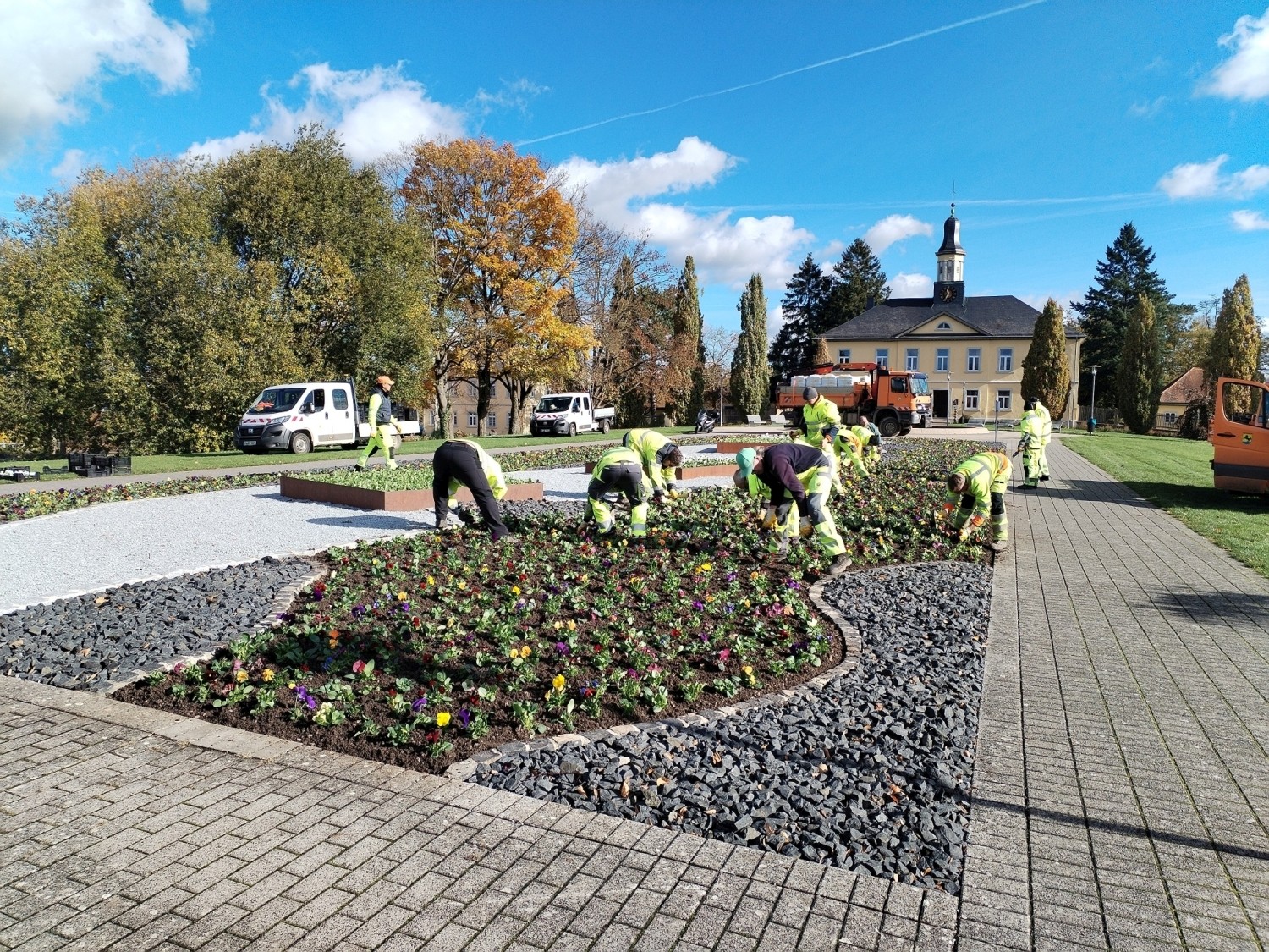 Am 29.10. und 30.10. haben die Mitarbeiter des Bauhofes bei bestem Pflanzwetter die Winterbepflanzung im Feuerbeet im Salinengarten gesetzt. Insgesamt 16.600 Pflanzen brachten sie an den beiden Tagen allein im Feuerbeet in die Erde.